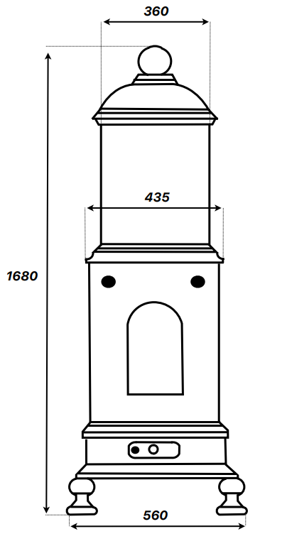 Designen är kraftfull, vacker och tidlös. På insidan finns dock idag en modern eldstad som klarar alla dagens krav på effektivitet och miljö. Med sin vikt på rejäla 280 kg så lagrar den också värme betydligt längre än en vanlig braskamin.